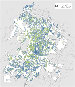 Cities like Austin and Oxford maintain “connectivity maps” to identify the worst sidewalk gaps and set clear priorities for filling them, ensuring resources are spent where they make the biggest impact.