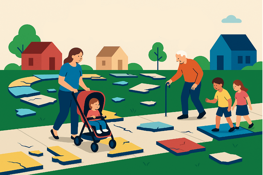 This isn’t just a sidewalk gap. It’s a connectivity gap. Every missing link is a barrier to health, independence, economic vitality, and to the simple dignity of being able to move safely through one’s own hometown on foot.