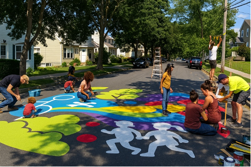 Sidewalks don’t just move people; they are where human interactions take place. Pop-up crosswalks, murals, and tactical improvements shift sidewalks from forgotten strips to beloved parts of community life.