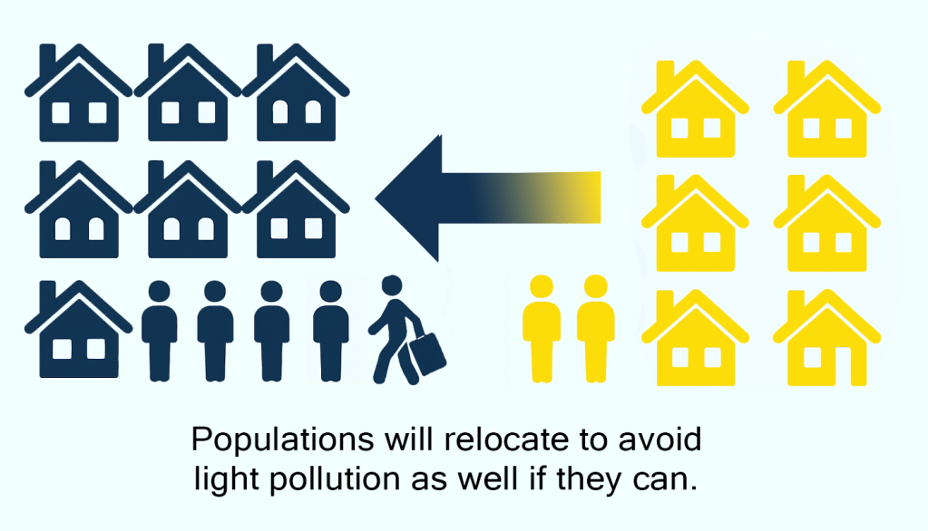 Overly bright streetscapes have negative consequences too, such as making neighborhoods less hospitable. Relocating like we did, is surprisingly common according to studies done by the London School of Economics. And in downtown areas, excessive lighting can shift a space from feeling safe, to feeling unwelcomingly on display.