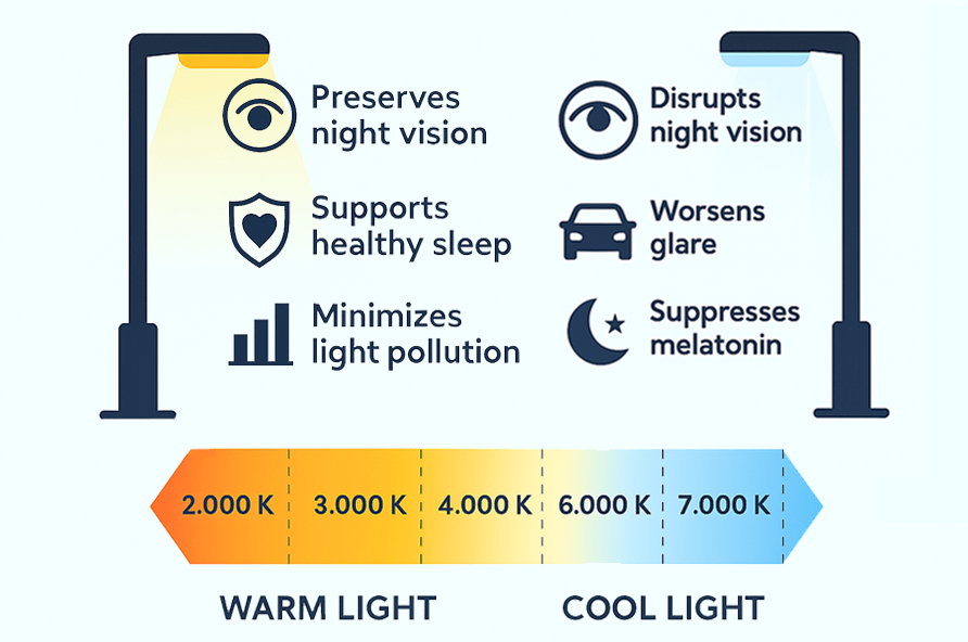 This kind of cost reduction benefits both public and private sectors. But energy use is only part of the equation. The color temperature of light matters as well.